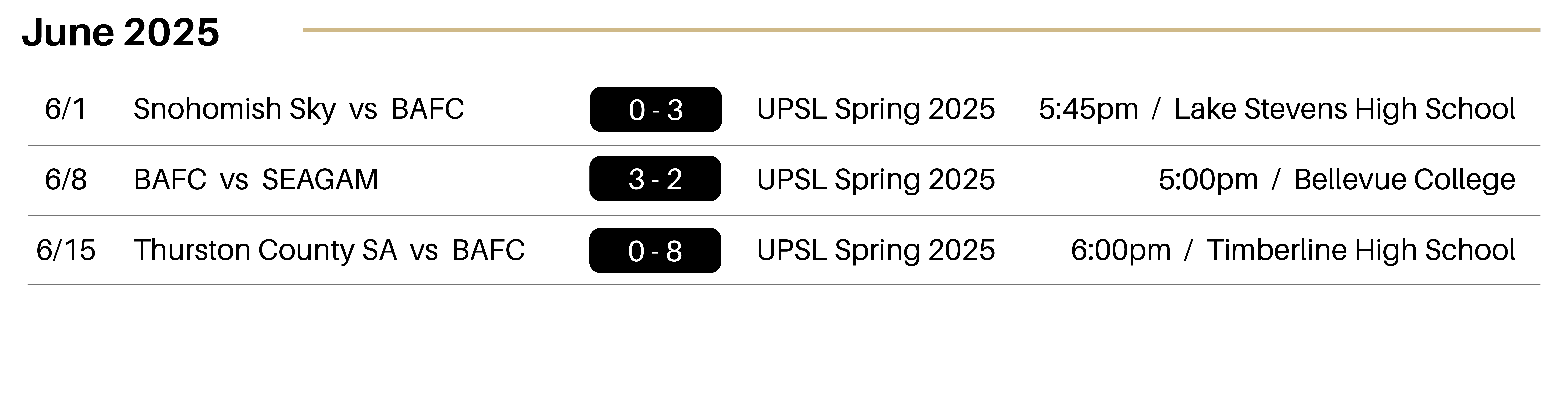 - Goals: 35′ Beckham Mischel, 58′ Jacen Stein (Nico Lopez)
